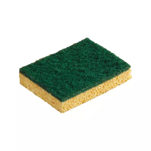 Éponge à récurer en cellulose végétale. Double face : une face tampon vert et une face en cellulose.